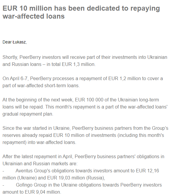 I like that you have summarized the AMA part dedicated for Russian Loans affected by the war but I request Mintos to publish updates on these loans on the page that is dedicated for this purpose: